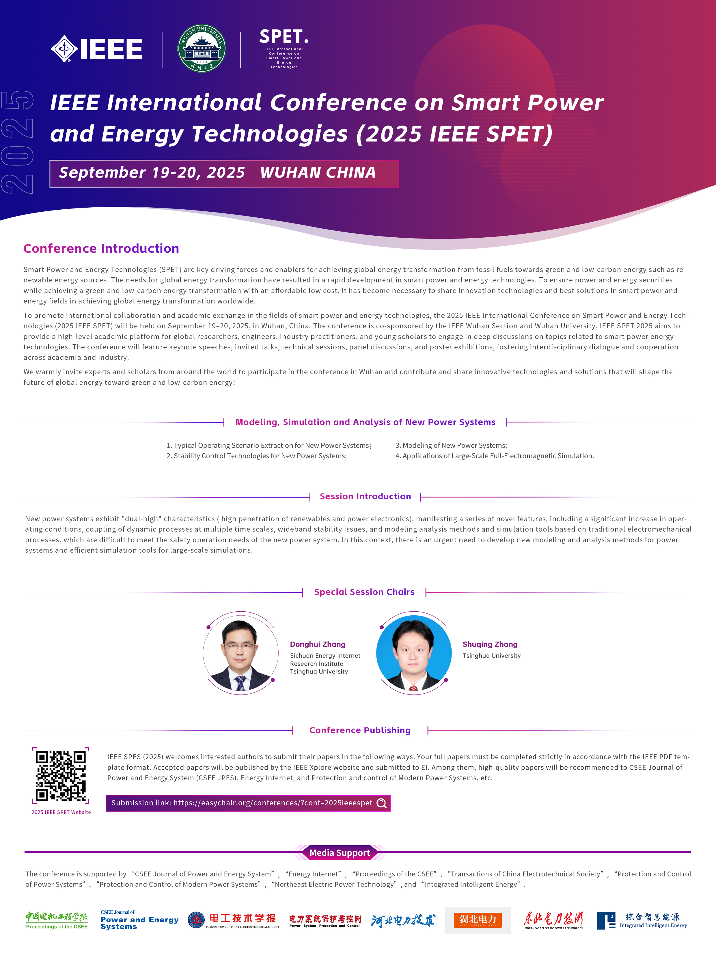 IEEE SPET (2025) welcomes proposals for special session within the technical scope of the conference. Please contact the Conference Secretariat at spet2025@163.com before June 23, 2025.